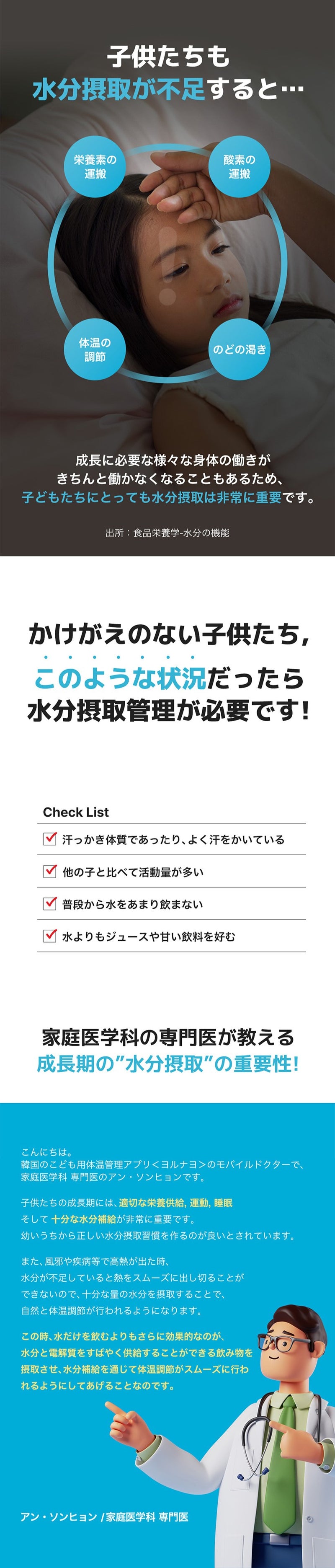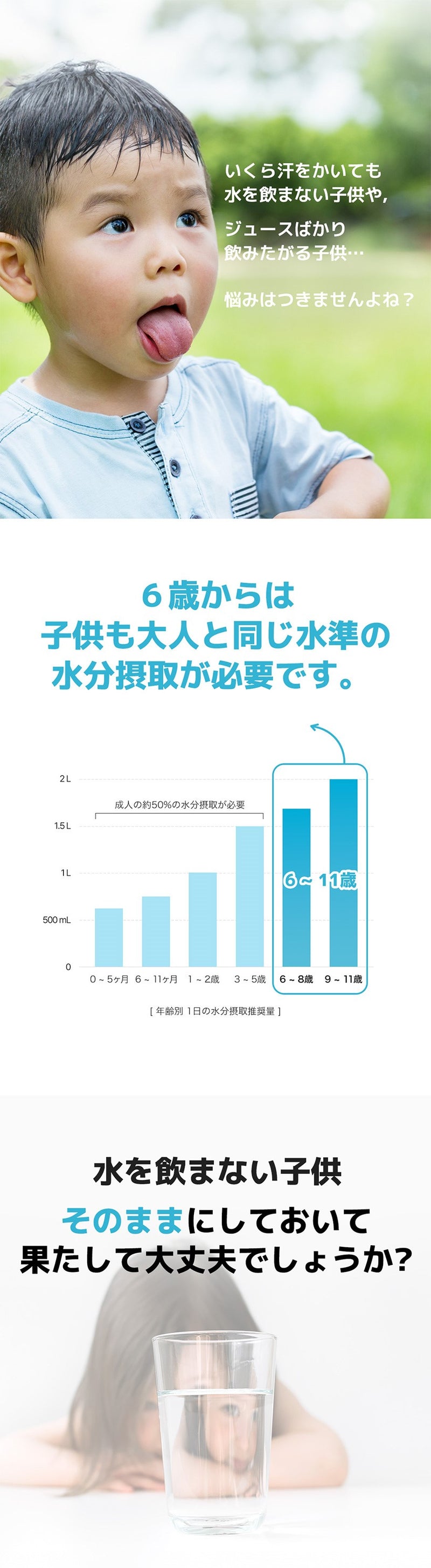 汗をかいた時はもちろん、風邪や胃腸炎時の脱水対策としても。