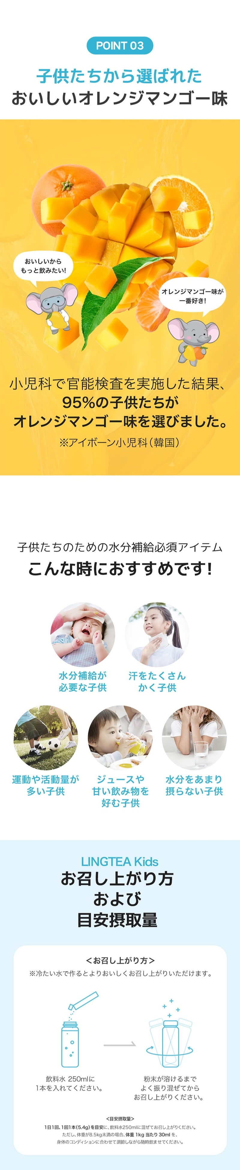 粉末結晶ブドウ糖、精製塩(韓国産)、クエン酸三ナトリウム、クエン酸カリウム、DL-リンゴ酸、天然香料(マンゴー香料)、ビタミンC、オレンジ濃縮粉末(オレンジ濃縮液:スペイン産)、クエン酸、マンゴー抽出粉末[ マンゴー抽出液(マンゴーピューレ:フィリピン産)]、天然香料(青みかん香料)、天然香料(オレンジ香料)、ステビオール配糖体、スクラロース(甘味料)、酸化亜鉛