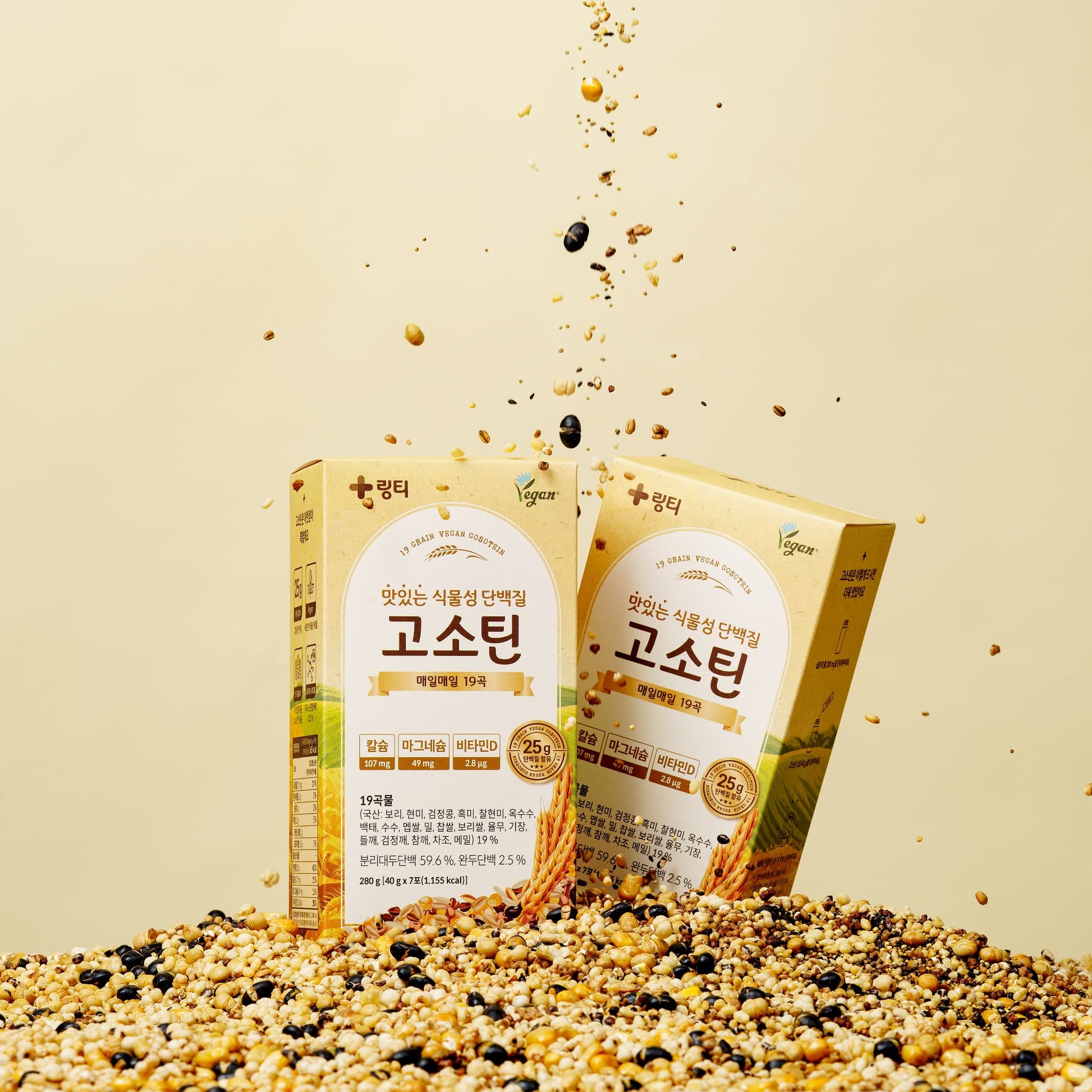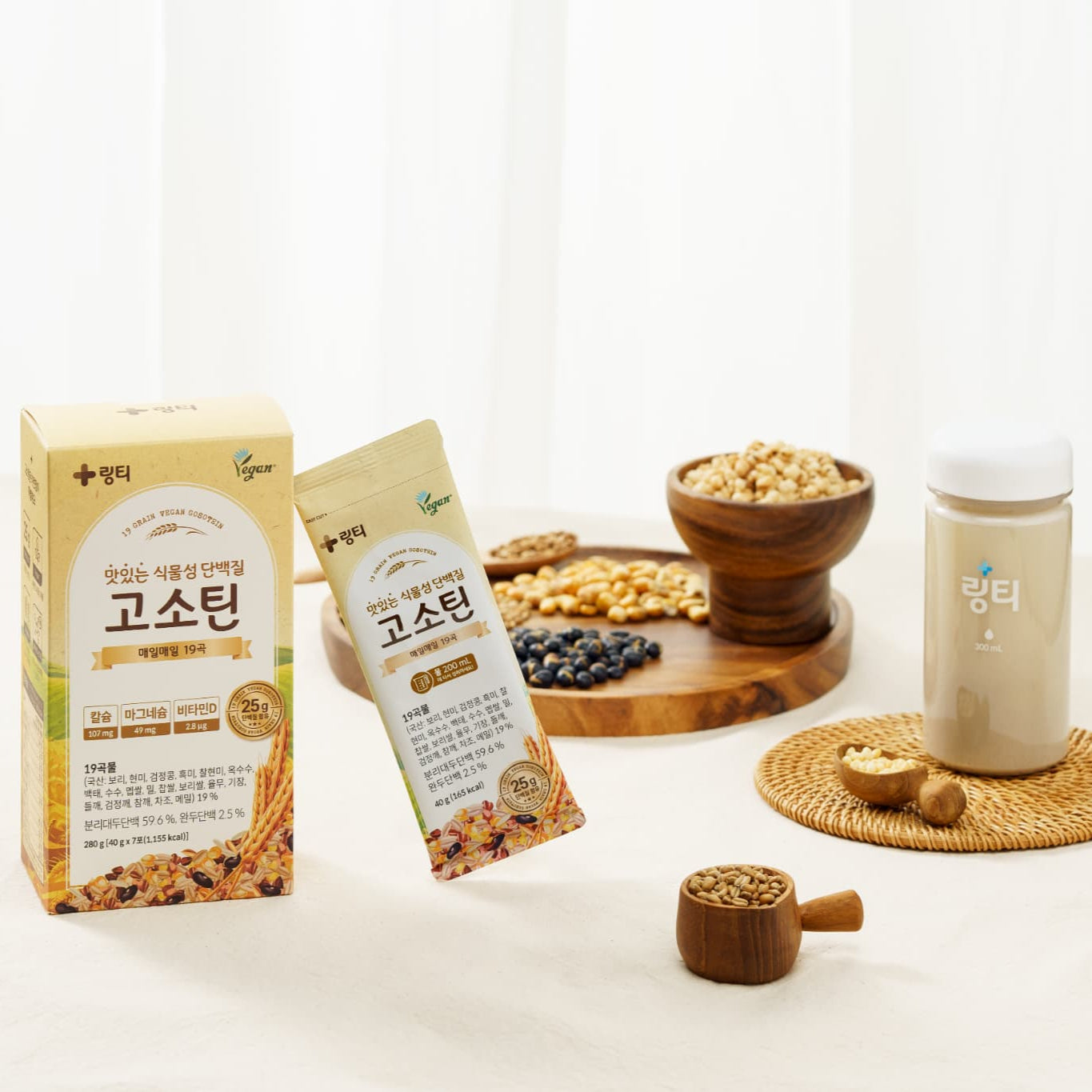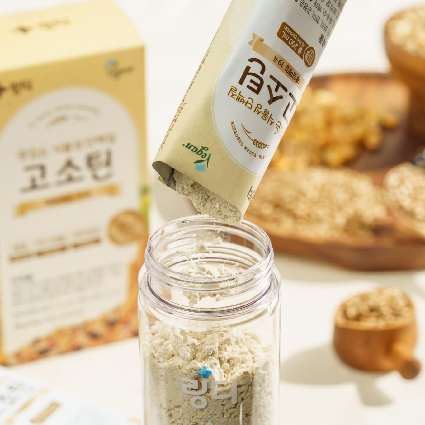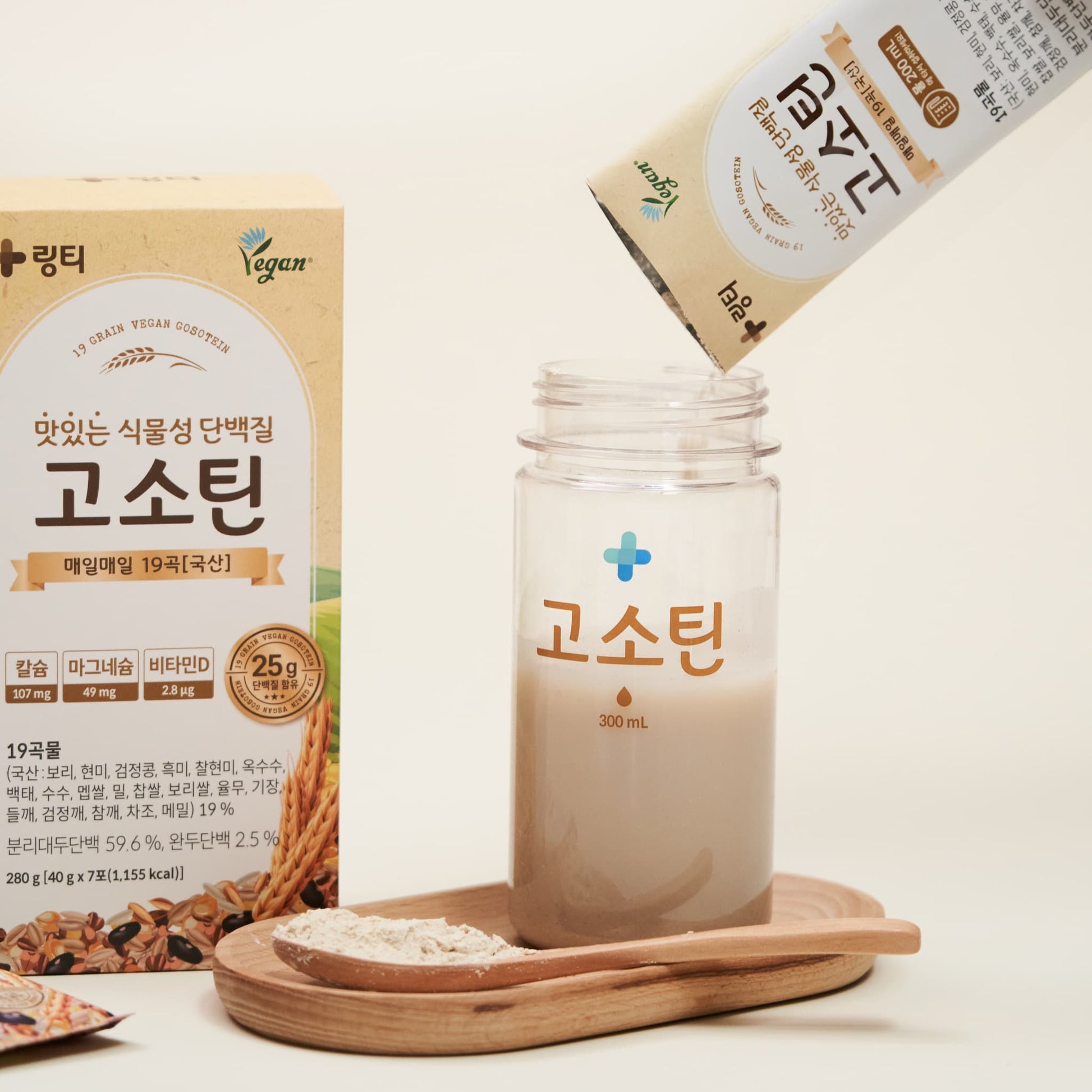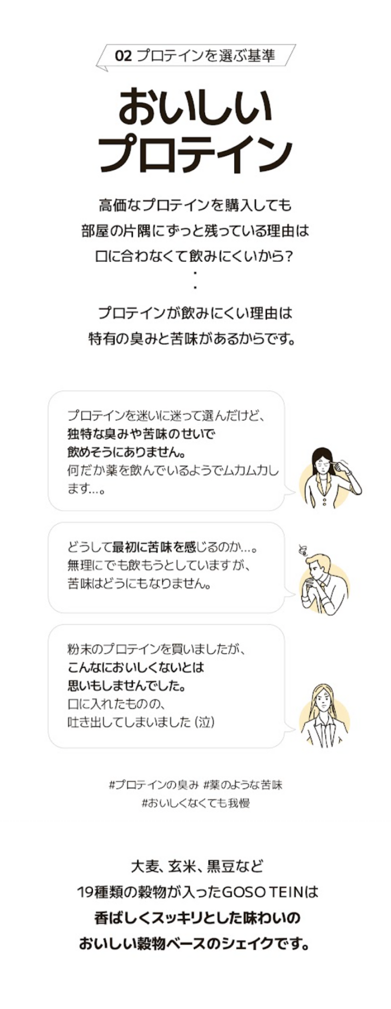 おなかにやさしい植物性プロテイン、GOSOTEIN。25gのタンパク質と19種類の穀物、9種類の必須アミノ酸など必要な栄養素がぎっしり詰まった、自然な味わいのプロテインで楽しく健康管理!