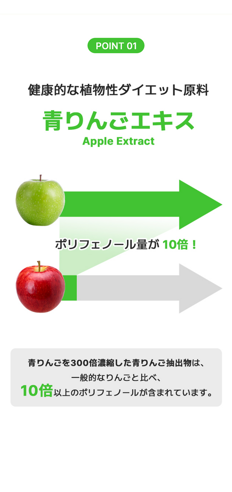 青りんごは食品に広く使用されている安全な成分であり、青りんごエキスもまた健康機能食品として安全な成分です。