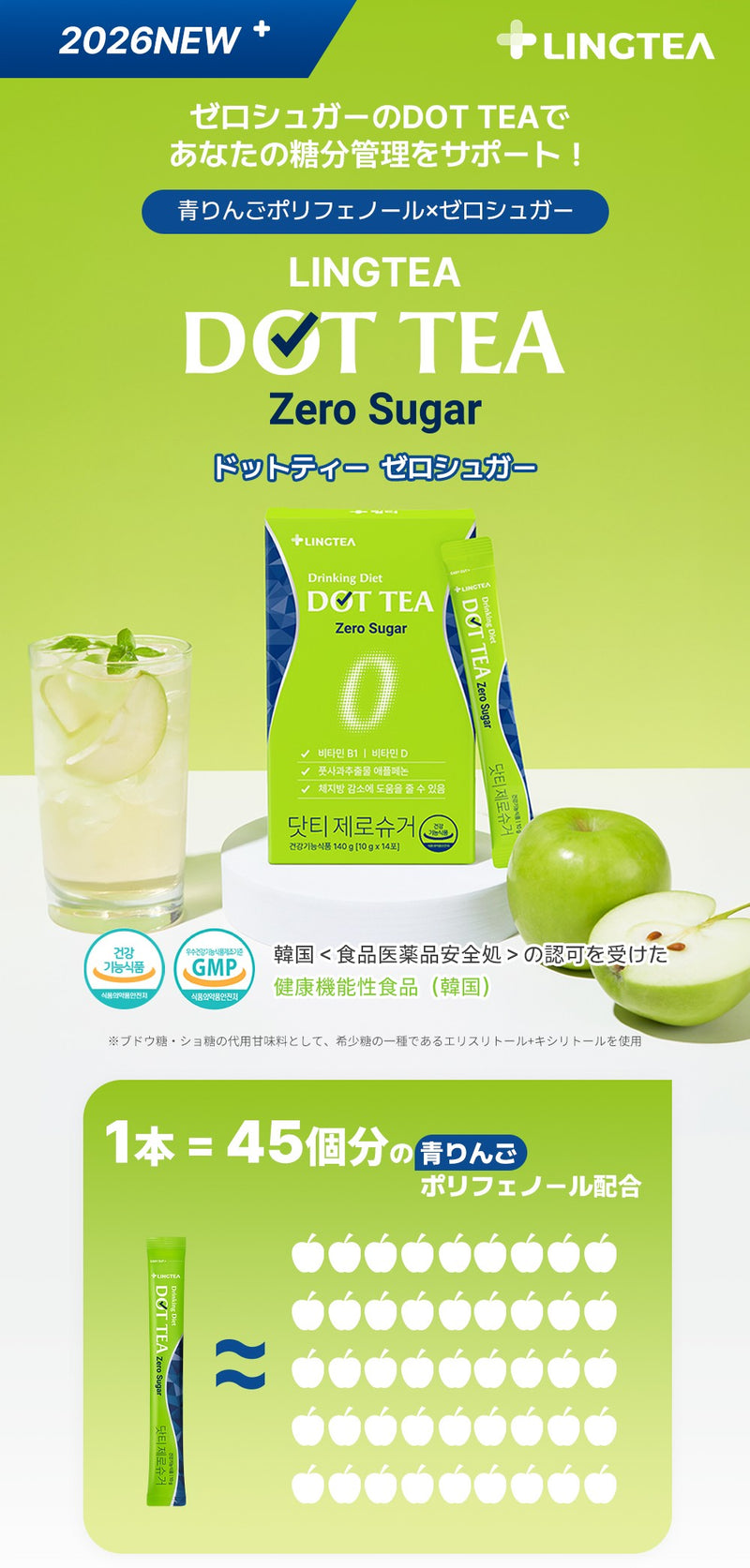 DOT TEA -Zero Sugar- ドットティーゼロシュガー 青りんご味 ダイエットドリンク